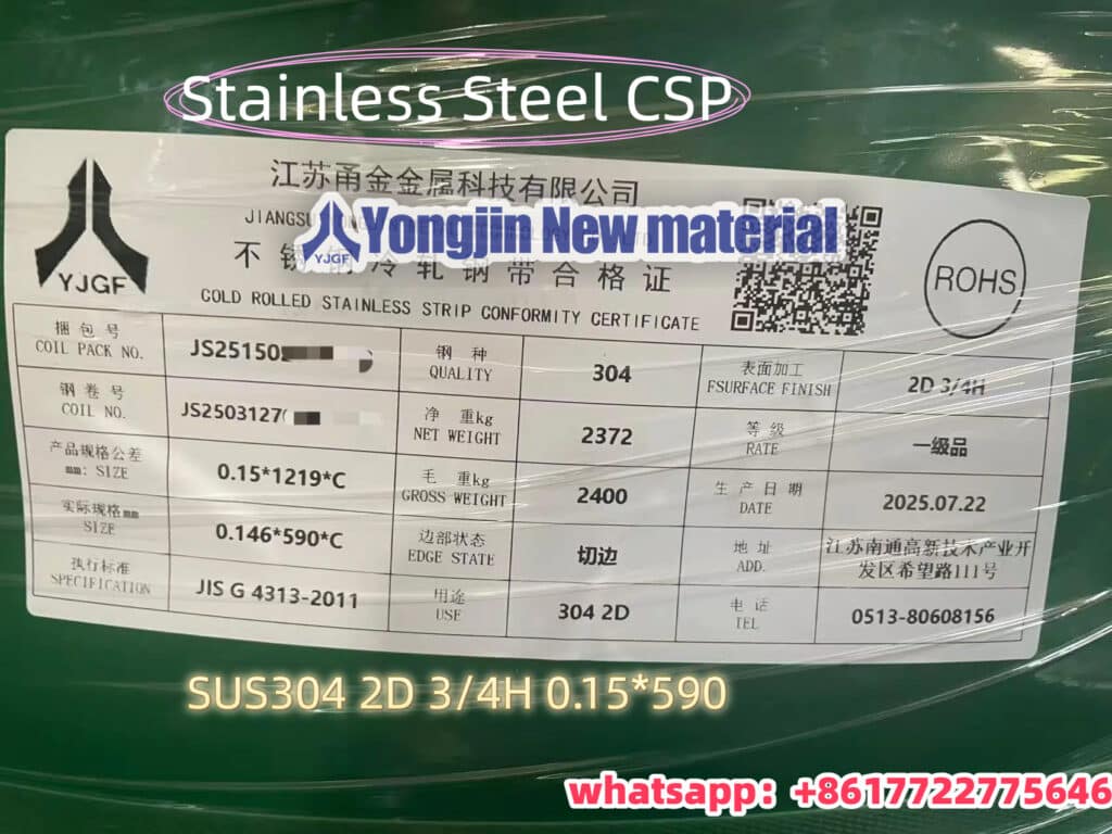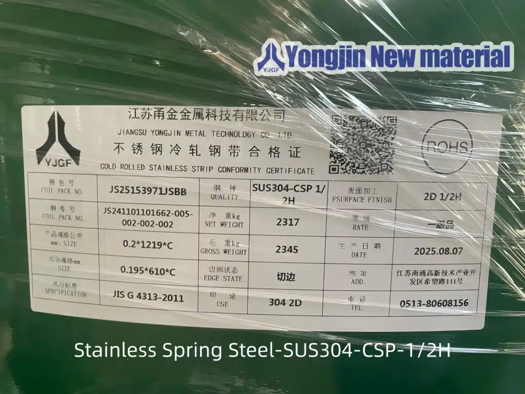 YJGF Stainless Steel &Titanium Supplier | Foshan Yongjin New Material > 产品 > SUS304-CSP Stainless Spring Steel Strip EN1.4301 Thin Strip 1/2H 3/4H Full hard manufacture stockist